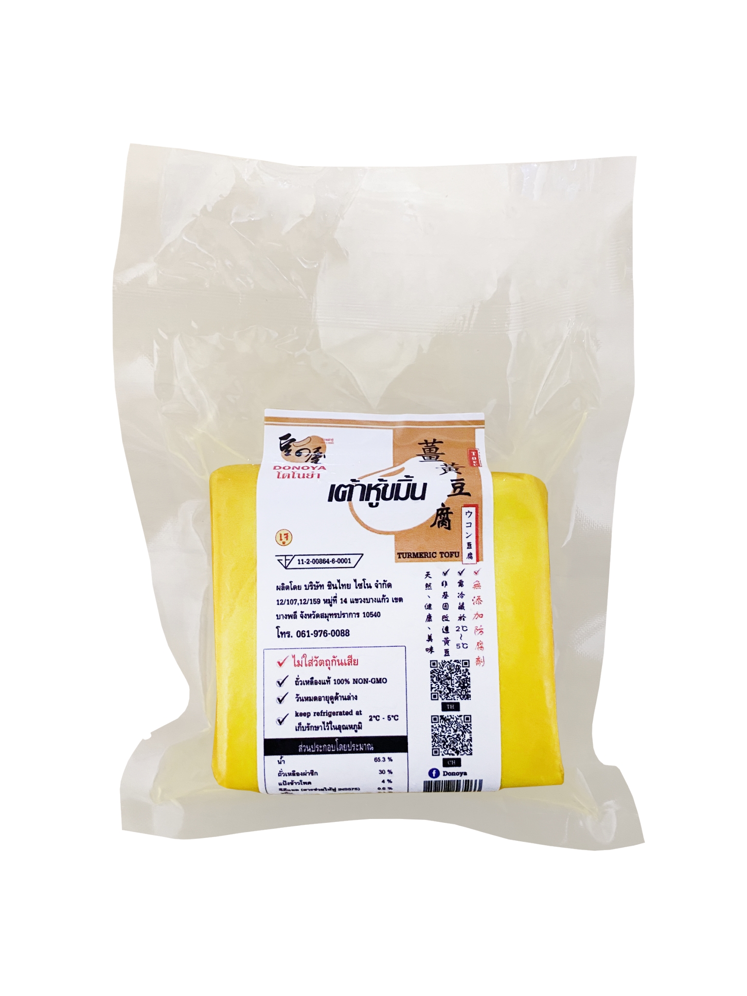 เต้าหู้ขมิ้นอ่อน DONOYA เนื้อเนียนนุ่ม ผ่านการคัดสรรผงขมิ้นจากธรรมชาติ ซึ่งมีคุณสมบัติช่วยต่อต้านอนุมูลอิสระ ต้านการอักเสบ ป้องกันไขมันในเลือด ป้องกันมะเร็ง ช่วยชะลอวัย และลดการเป็นอัลไซเมอร์ รสชาติอร่อยและมีประโยชน์ต่อสุขภาพ เป็นเต้าหู้เพื่อสุขภาพ เหมาะสำหรับนำไปนึ่ง ผัด ทอด ต้ม หรือทำสุกี้